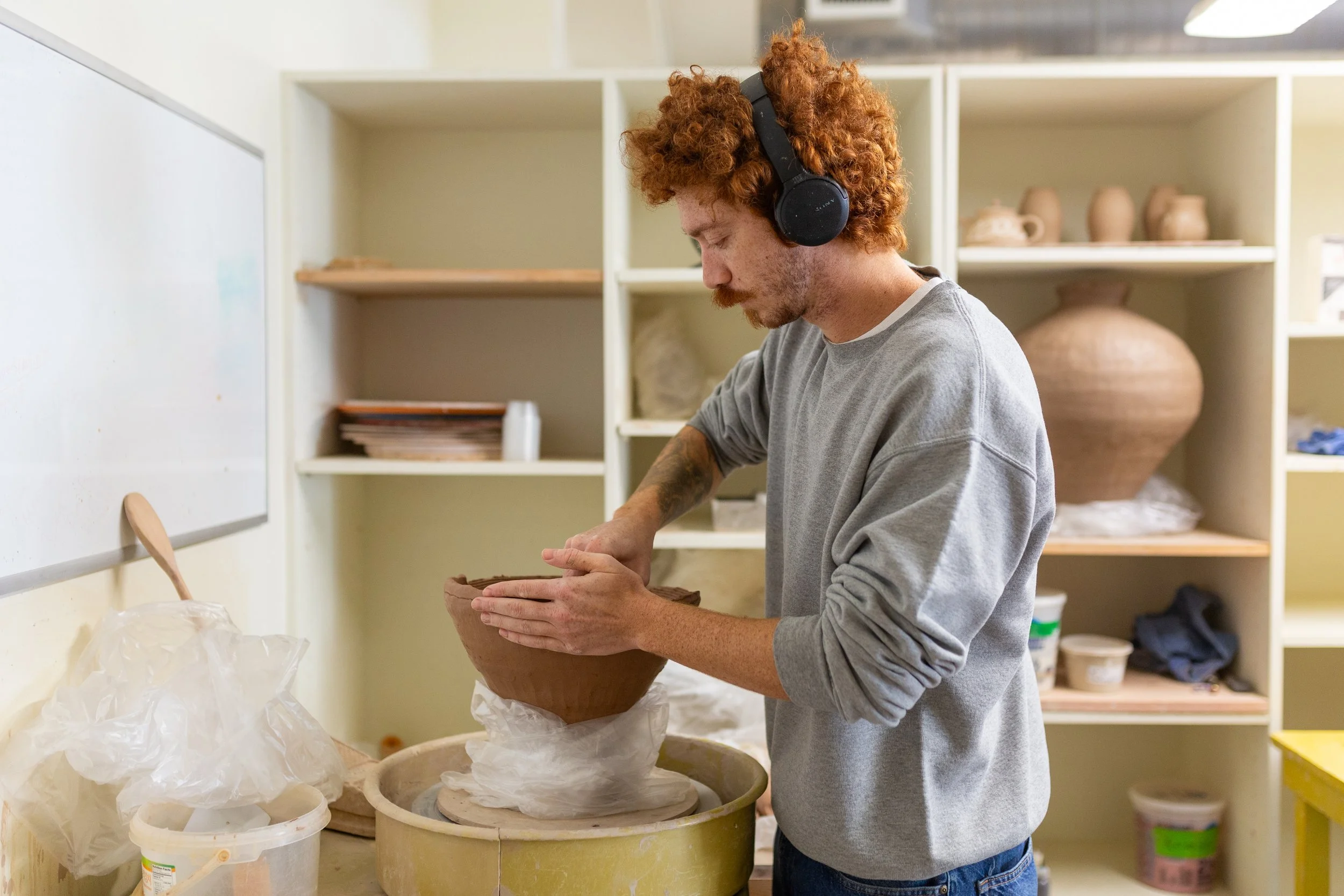 Born and raised in North Carolina, Steven Parker discovered his passion for clay while studying History and Religious Studies at UNCG. Under the mentorship of Professor Nikki Blair, and through his work for Ibrahim Said and Lara O’Keefe, Steven built a rigorous technical foundation. Following graduation, he completed a two-year apprenticeship with Daniel Johnston in Seagrove and worked a firing cycle with Mark Hewitt in early 2025.